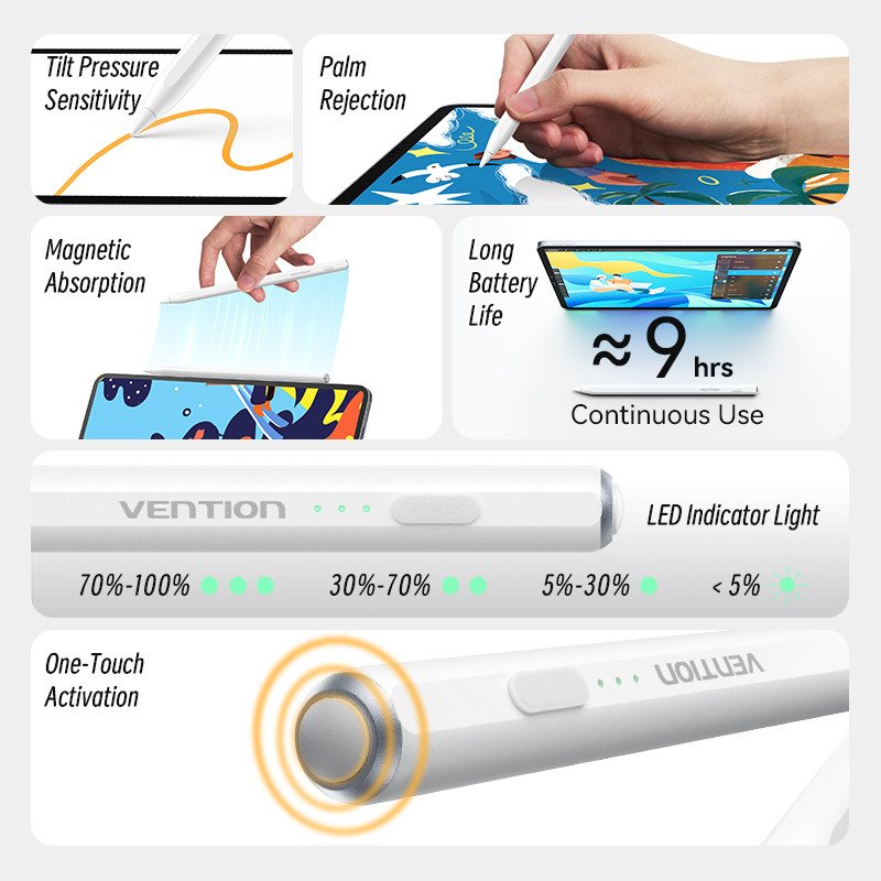 Vention Stylus Pen Digital Touch Screen Tilt Sensitive Magnet Switch with Palm Rejection for iPad