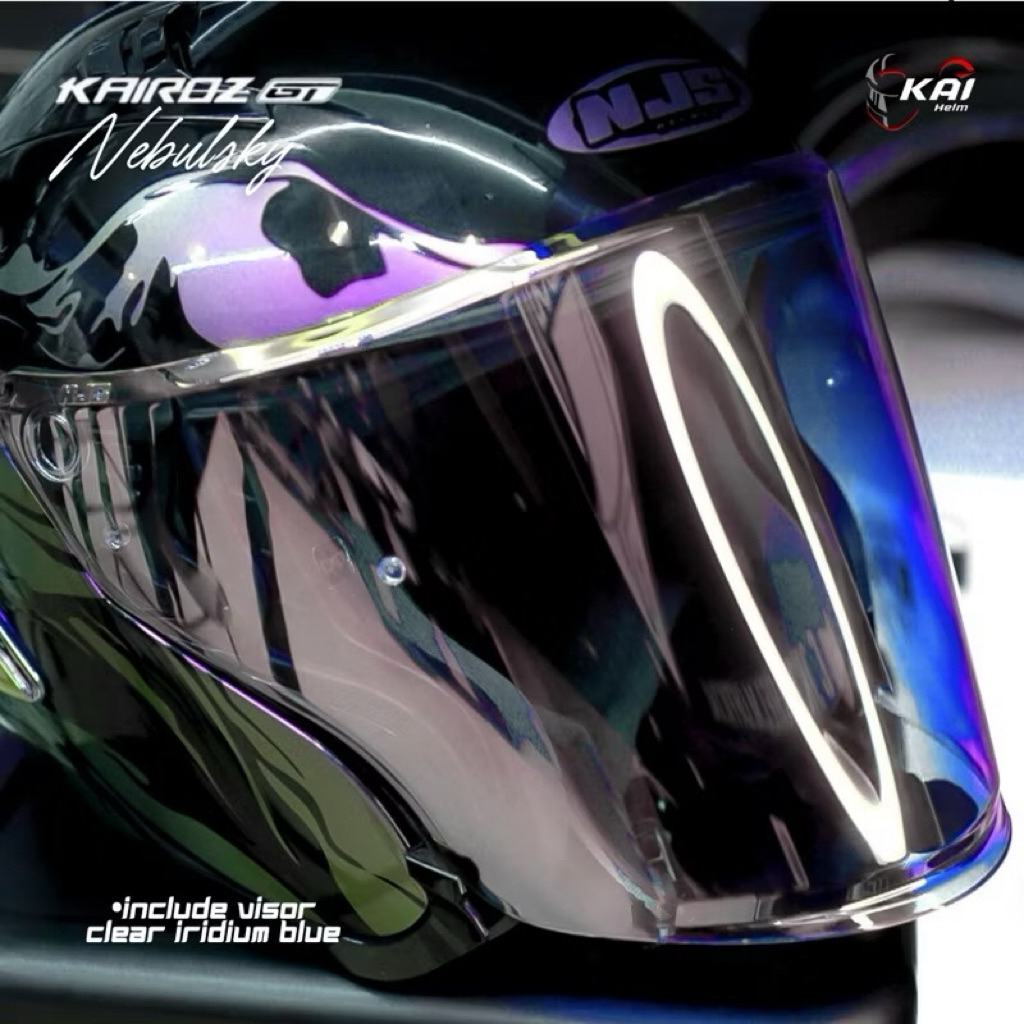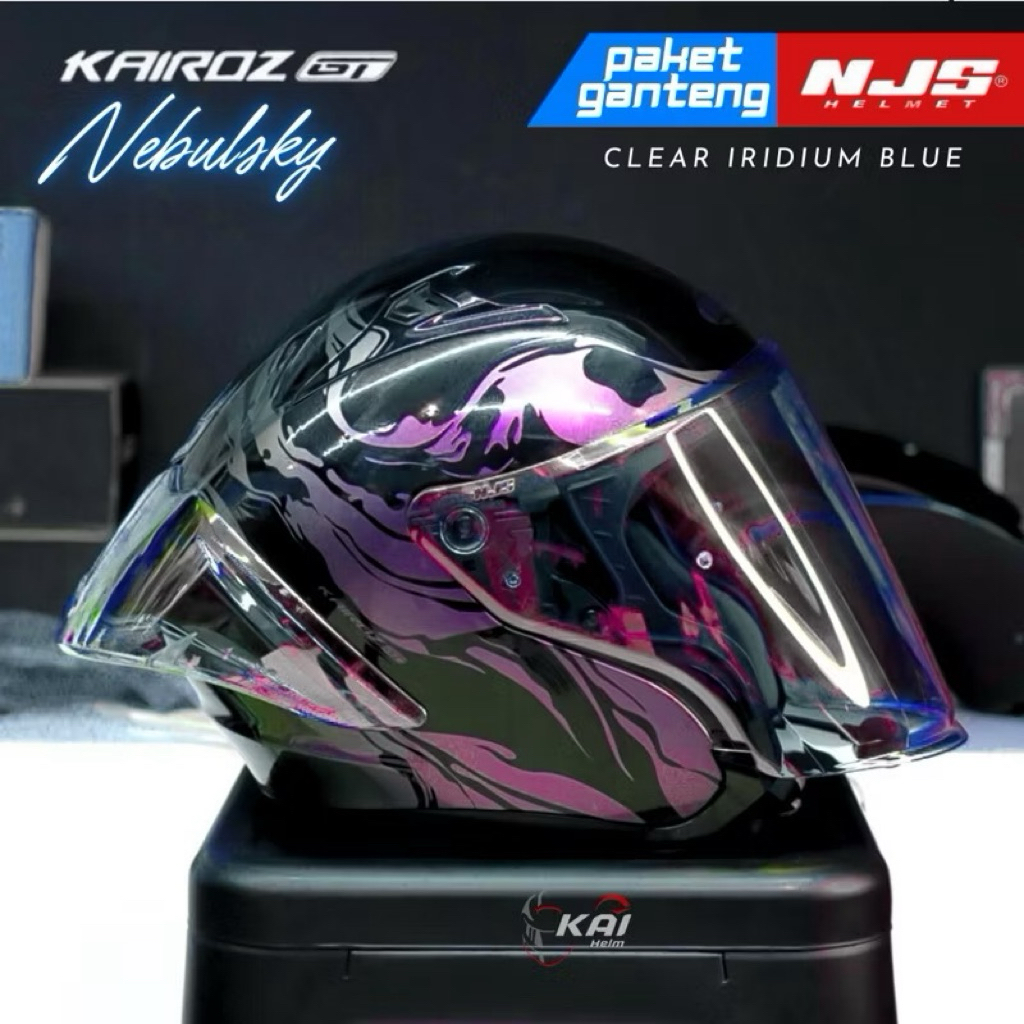 PAKET GANTENG HELM NJS KAIROZ GT NEBULASKY CLEAR IRIDIUM BLUE