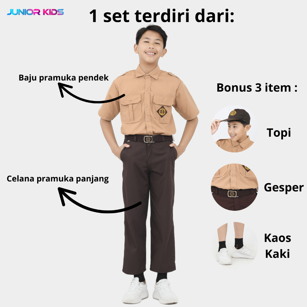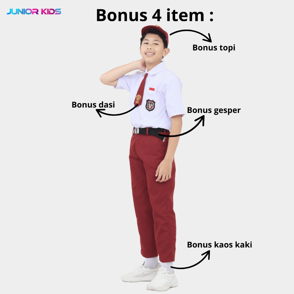 Setelan lengkap seragam sekolah SD merah putih & pramuka anak laki laki kelas 1-6 SD (MP A2 & PR A2)