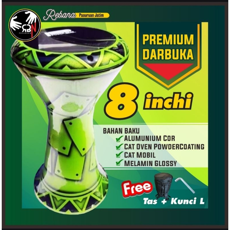 darbuka 8 inci green free tas dan kunci L