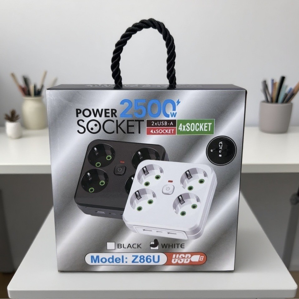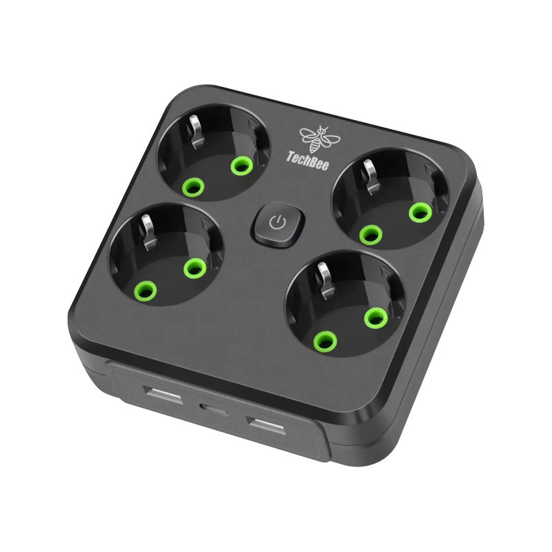 TechBee Powerport 2500W 4Socket+2USB Power Strip Power Socket stop kontak dinding Usb Charger Power
