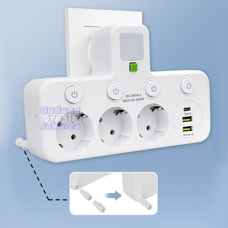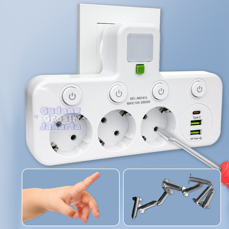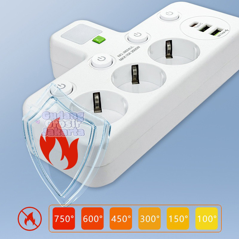 STOPKONTAK MULTIA 5 PORT + USB TYPE C - 2500W TAHAN API STEEKER EU ORIGINAL