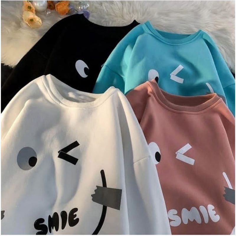 CREWNECK SWEATER BASIC OBLONG WANITA - EMOTE SMILE SWEATSHIRT PAKAIAN OBLONG - SWEATER