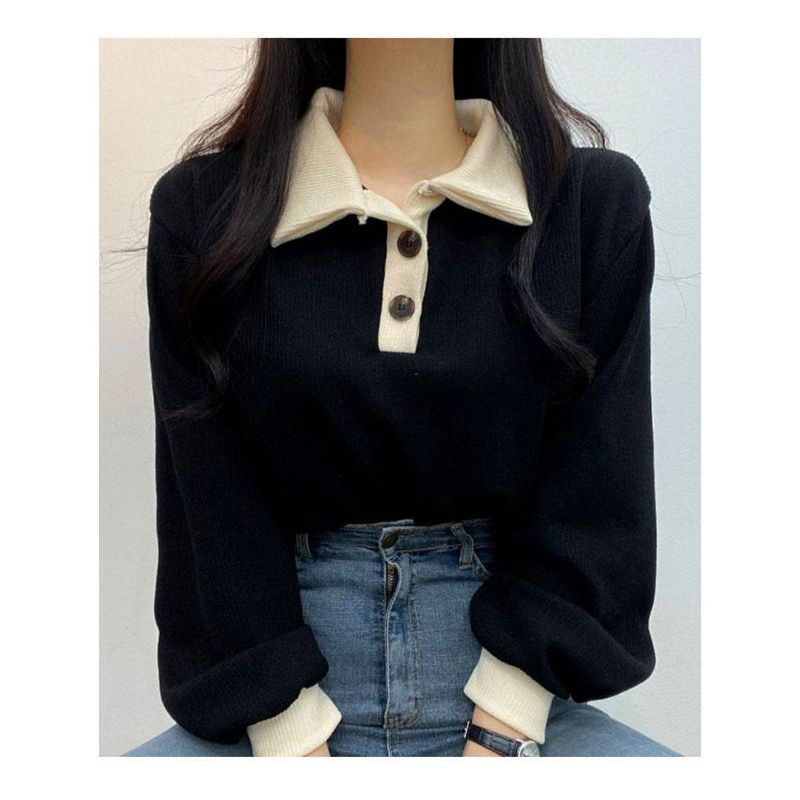 Sweater Wanita Oversize Collar Girl Sweater Kancing Polos Kerah | Sweater Size M.L.XL Korean Style