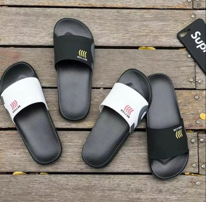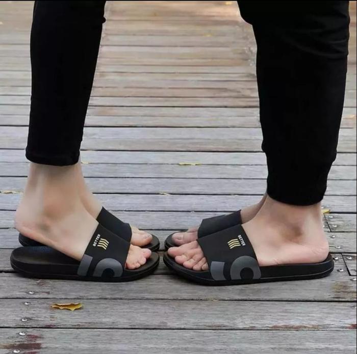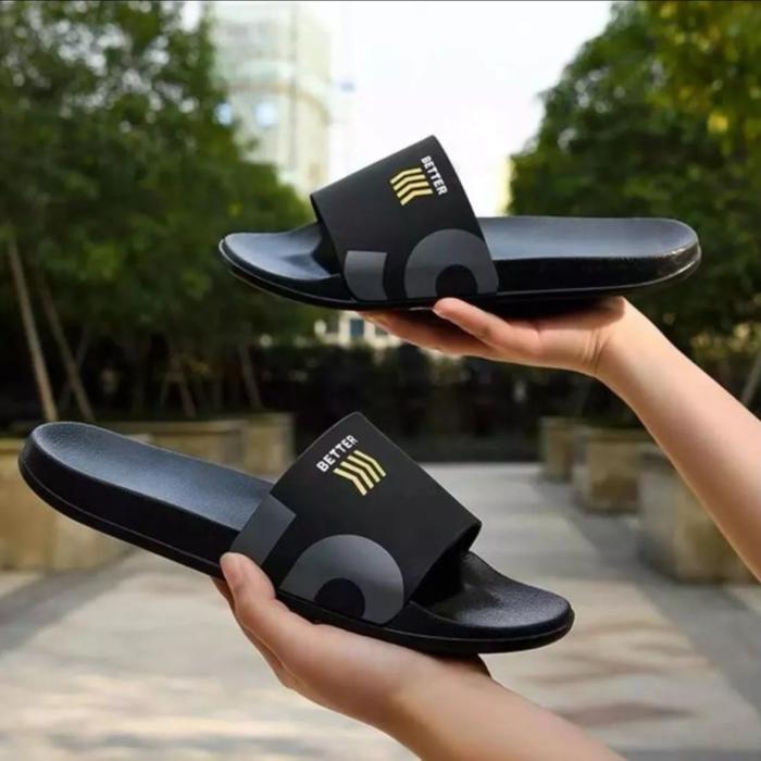 TERLARIS SANDAL SELOP KARET POLOS HITAM TRENDY MOTIF BETTER ALASCOPUSATSEPATUBOGOR SHOES PRIA SENDAL HITAM 38