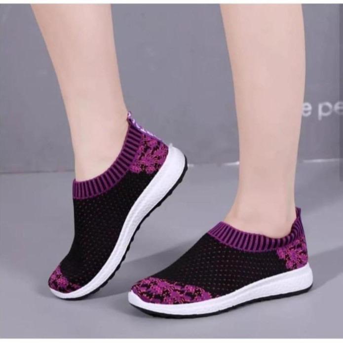 TERLARIS SEPATU SLIPON VENOM BUNGA WANITA TRENDY PRODUCT BEST SELLER SHOES KARET SNEAKERS HITAM FANTA 36
