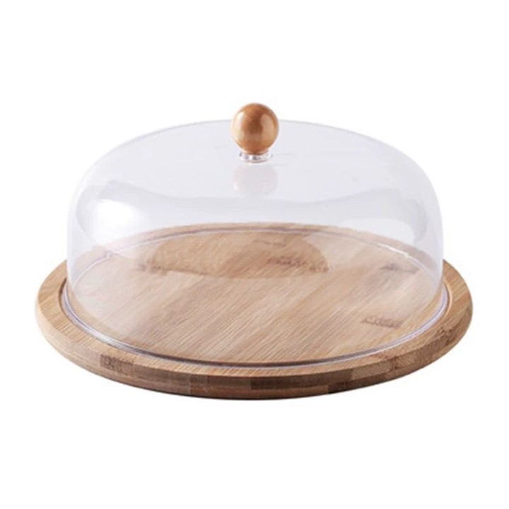 Wadah Nampan Kue 27cm/ Tudung Saji Kue Kayu Bamboo dengan Penutup / Tempat Kue Dessert Kayu Estetik