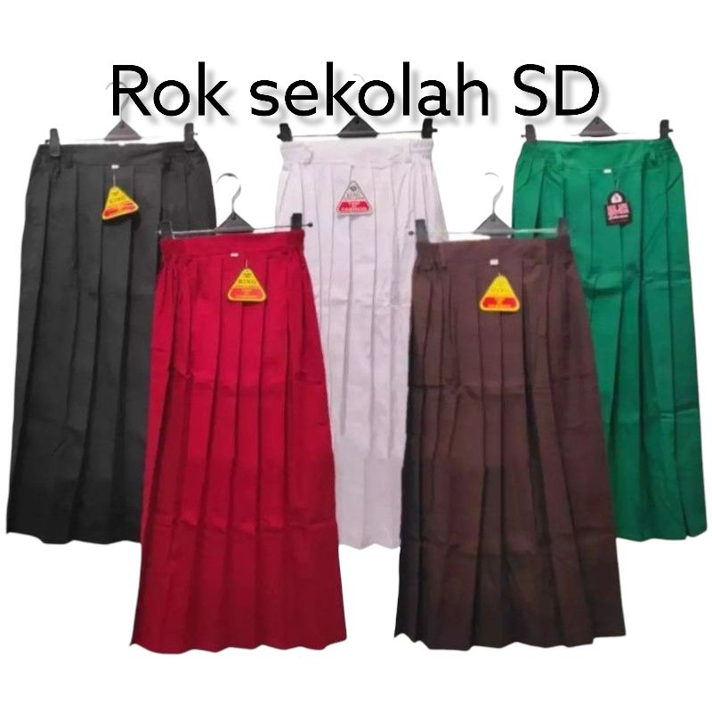 Rok seragam sekolah SD/MI kelas 1-6 Rok panjang merah putih hijau coklat hitam sekolah size 3-12