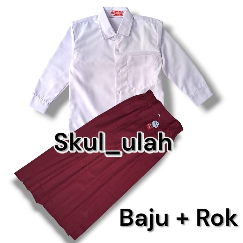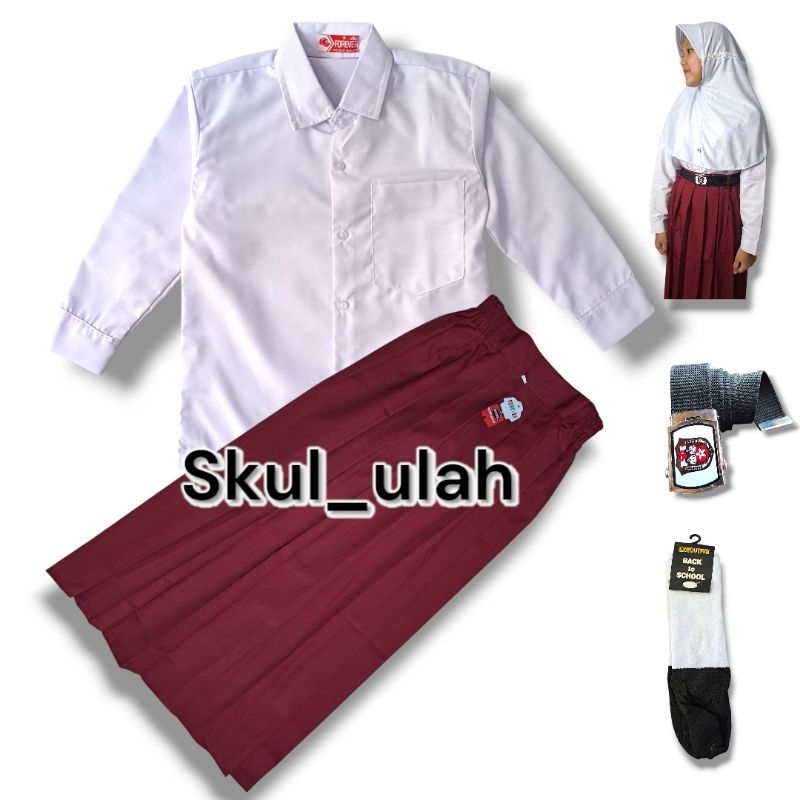 Setelan Seragam Sekolah SD MI Merah Putih Anak Perempuan Baju Polos Rok Merah Panjang