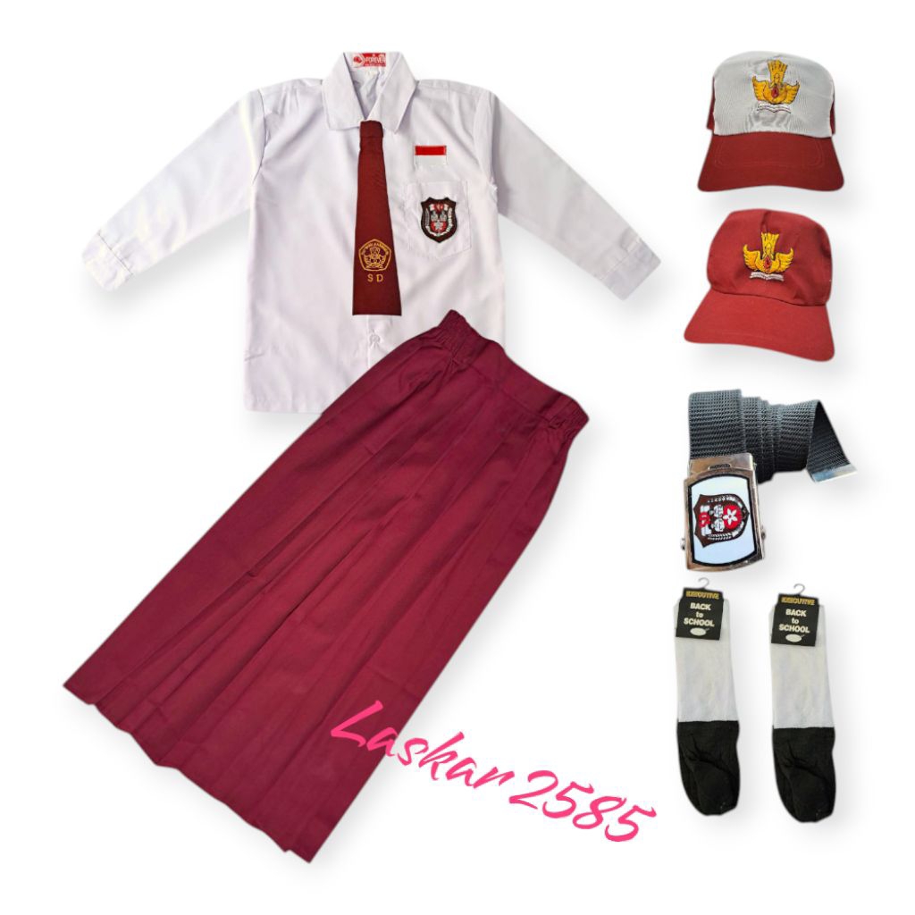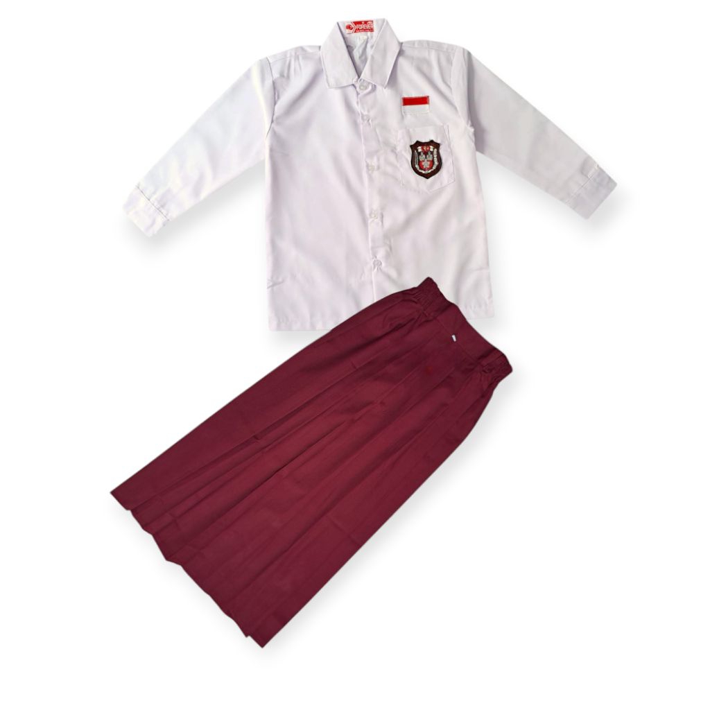 stelan seragam merah putih SD anak perempuan baju lengan panjaang rok panjang