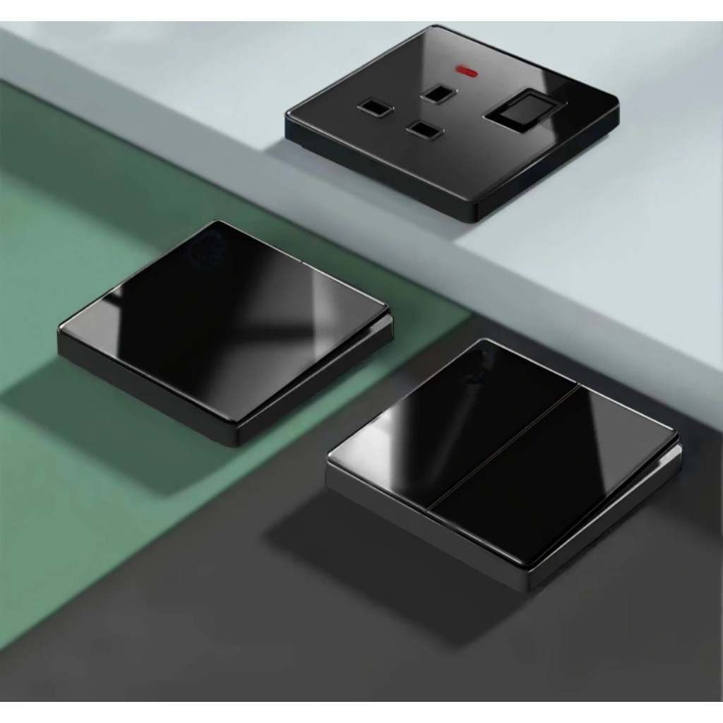 [ ] Saklar Sakelar Tempered glass Black White Titanium Diamond Hitam Putih Stop Kontak Rumah Hotel Mewah Luxury Lapis K