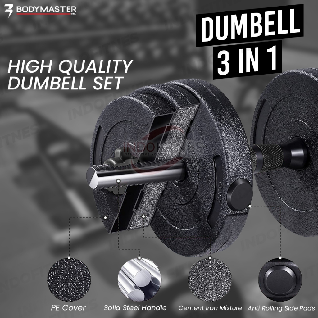 BODYMASTER 20KG BM-A015 Adjustable Dumbell 3in1 Barbell ABS PVC Dumbel