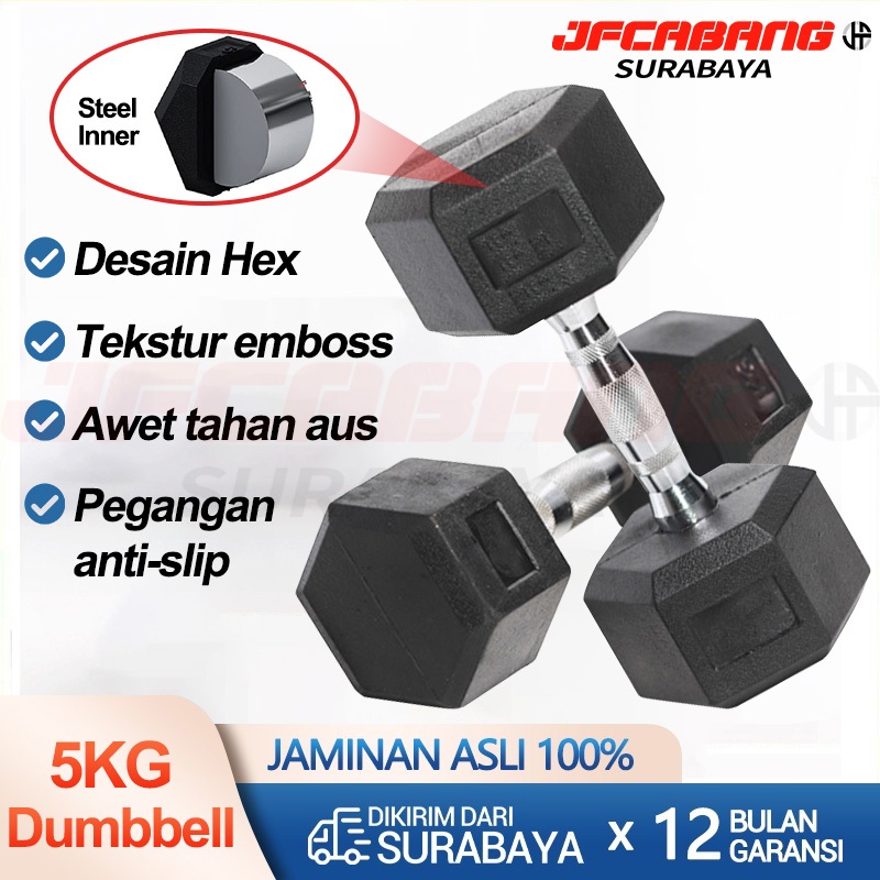 Dumbell Hexagonal 5kg Barbel/ Peralatan Fitness Alat Pembentuk Otot Tangan-jfcabangsurabaya