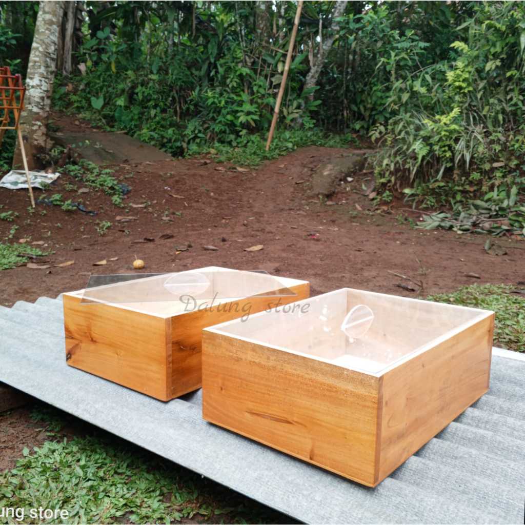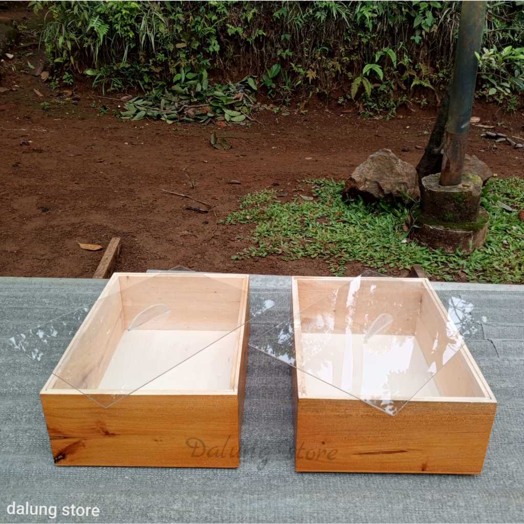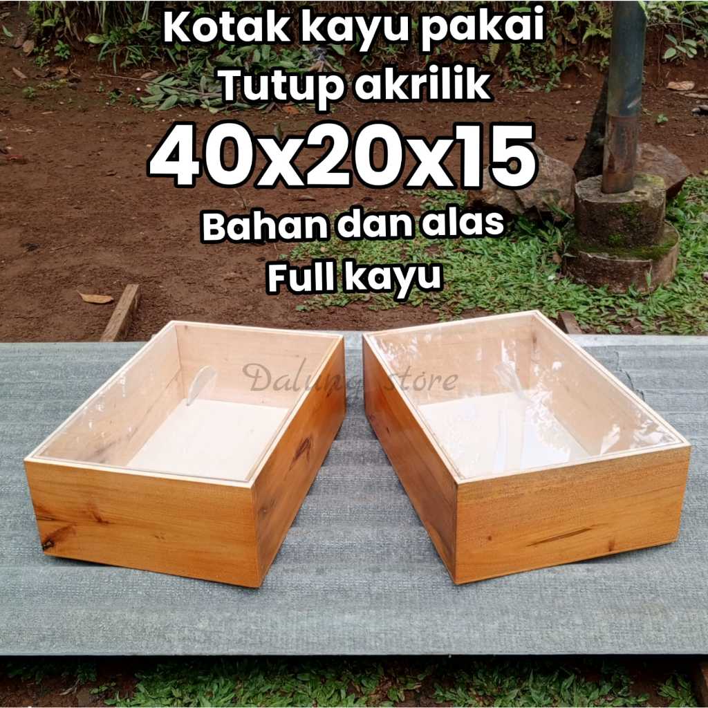 kotak kayu tutup akrilik 40x20x15 wadah donat tempat kue dll