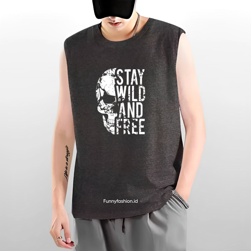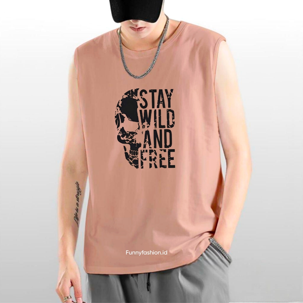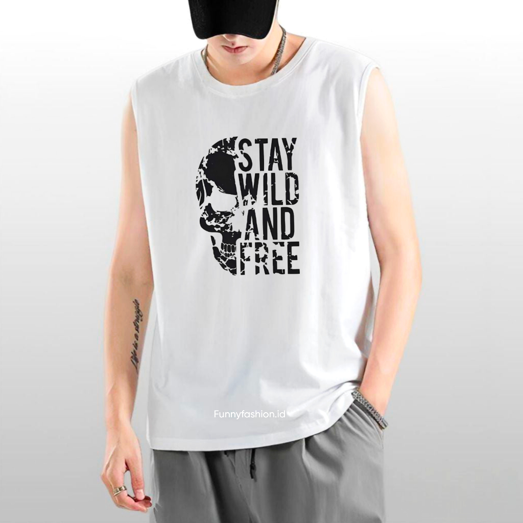 Kaos Singlet Pria Stay Wild And Free – Kaos Tanpa Lengan Distro Keren – Baju Gym Cowok Kekinian