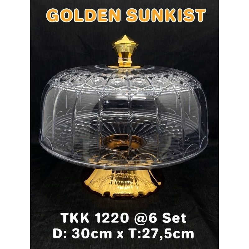 Tempat Kue Lapis Bolu Acrilic Plastik Bening Mirip Kaca Terbaru Golden Sunkist 1220 Gold