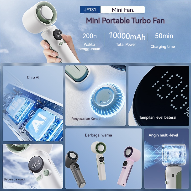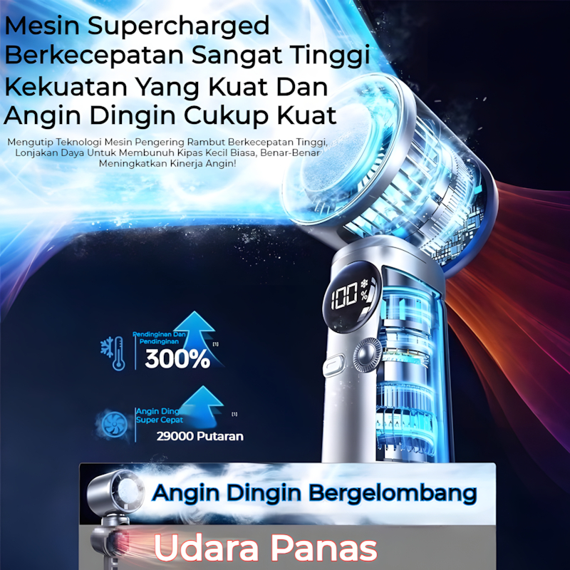 Kipas Kecepatan Tinggi Portabel Tahan Lama Baterai 10000mAh Semikonduktor 199 Tingkat Angin Turbo Genggam Fan Pendingin