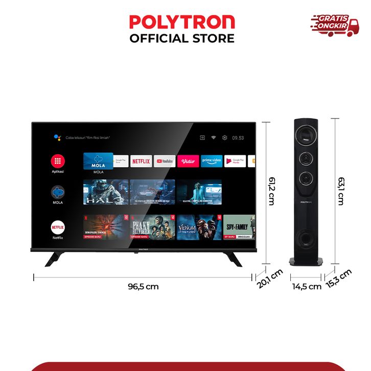POLYTRON TV 43 INCH SMART TV 24, 32, 40, 43 INCH DIGITAL GOOGLE TV SMART TV DIGITAL ANDROID TV CINEMAX TOWER SPEAKER