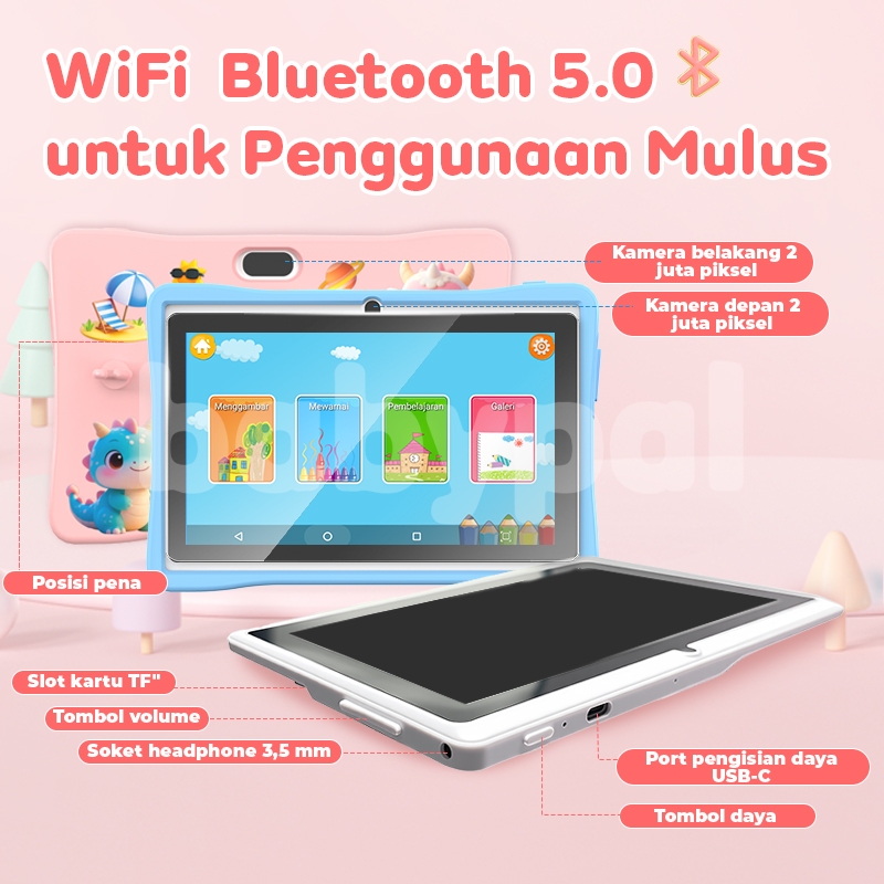 【Tablet Anak 7 Inch】Babypal B09 Android 14 | Baterai 3200mAh | Kontrol Orang Tua IWawa | Kamera Depan Belakang | Hadiah Casing & Tali Leher & Mainan Garansi 1 Tahun