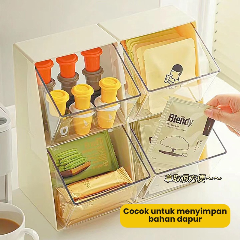 Dejavu Rak Meja Mini Laci Susun Transparan Rak Penyimpanan Aksesoris Makeup Bumbu Gelas Dapur HSB631