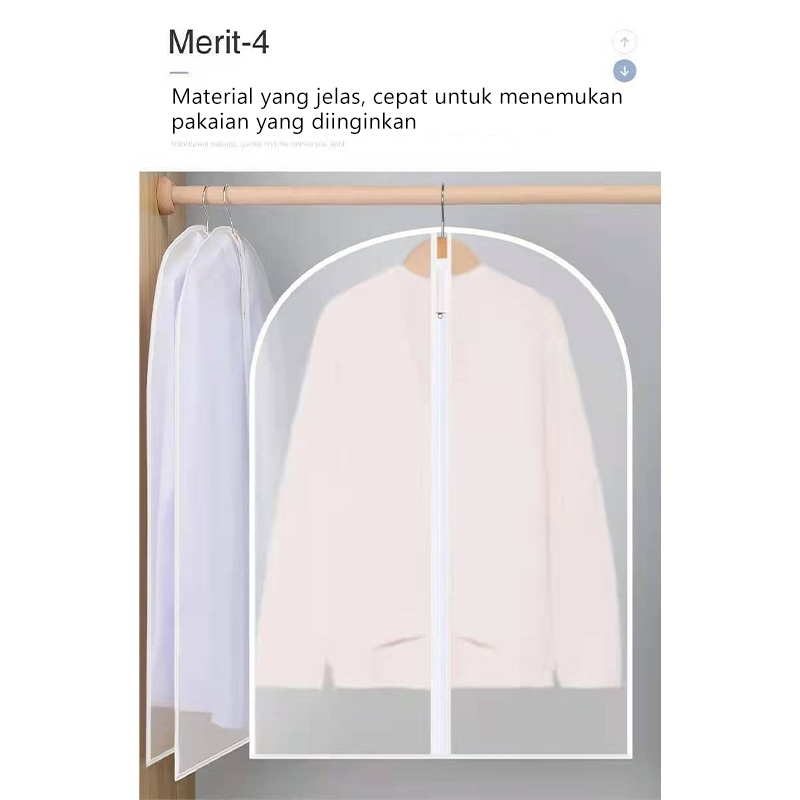 Cover Baju Gantung Anti Debu/ Cover Baju PEVA / Pelindung Pakaian Jas Gaun / Cover Baju Resleting PEVA