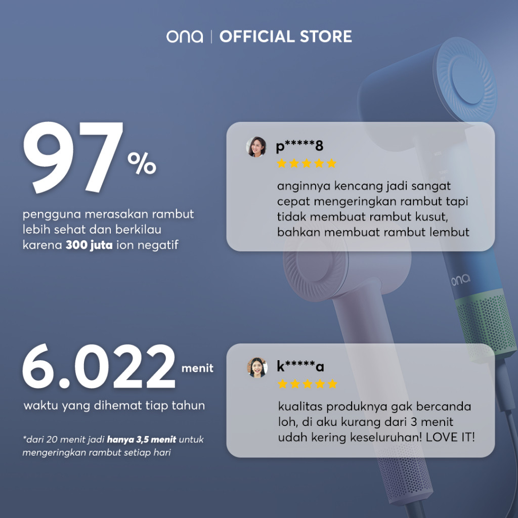 Ona [OMNIA] High Speed Hairdryer Pengering Rambut Ion Negatif Garansi 5 Tahun