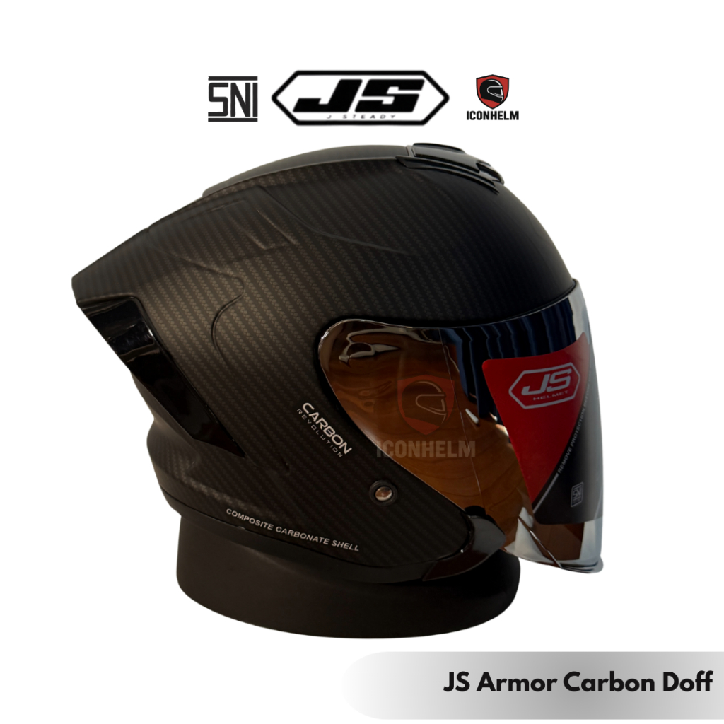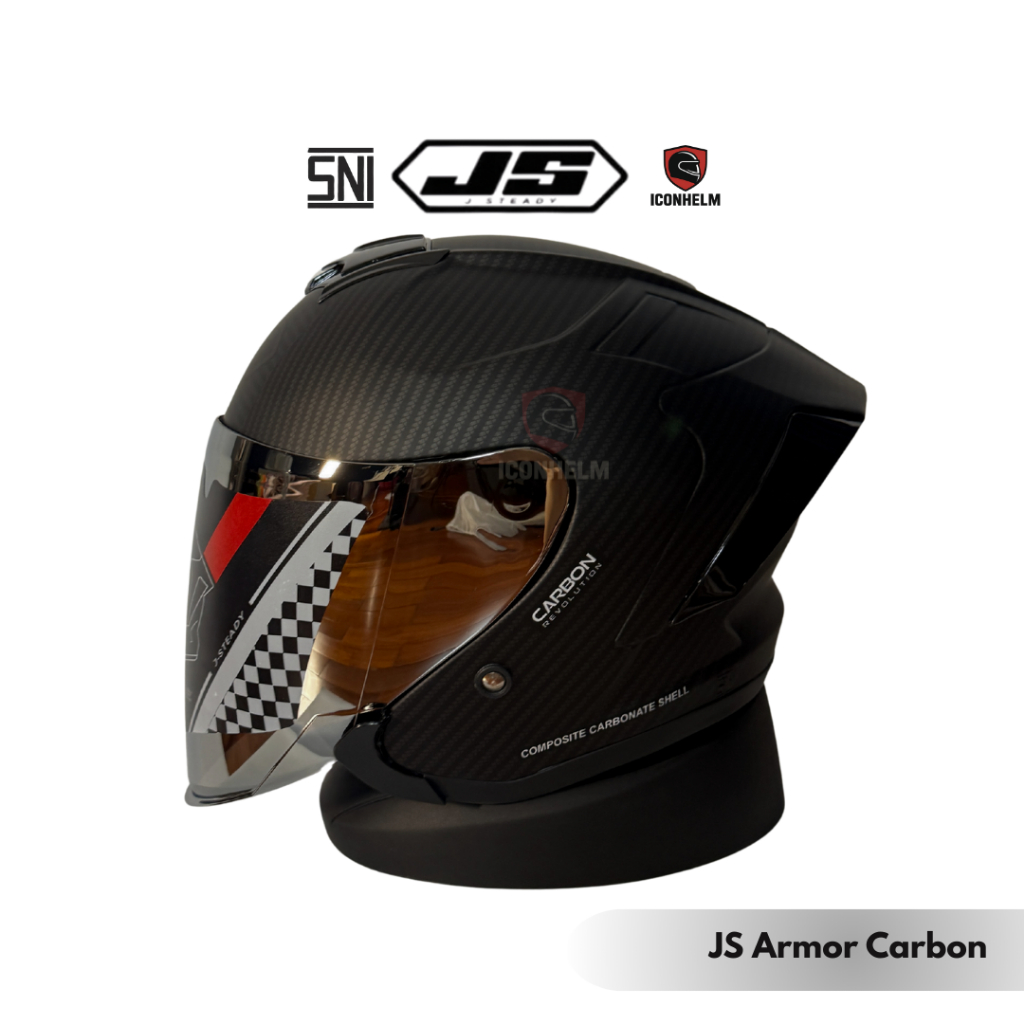 JS Armor Motif Carbon Gloss / Doff HELM Half Face Macho SNI Visor Silver Pria Wanita Ringan Stylish