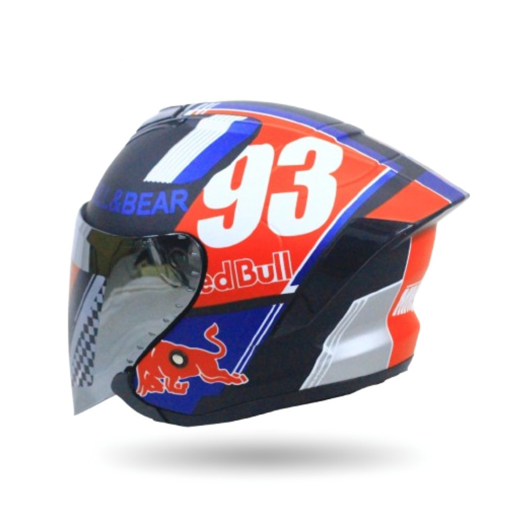 Helm JS Armor Ori Motif 93 Redbull Black Glossy - Helm Half Face Cowok Keren Paket Ganteng sudah SNI