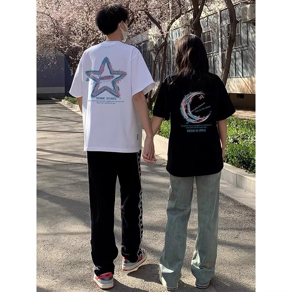 KAOS COUPLE STAR AND MOON KOREAN STYLE BAHAN SEMI KATUN