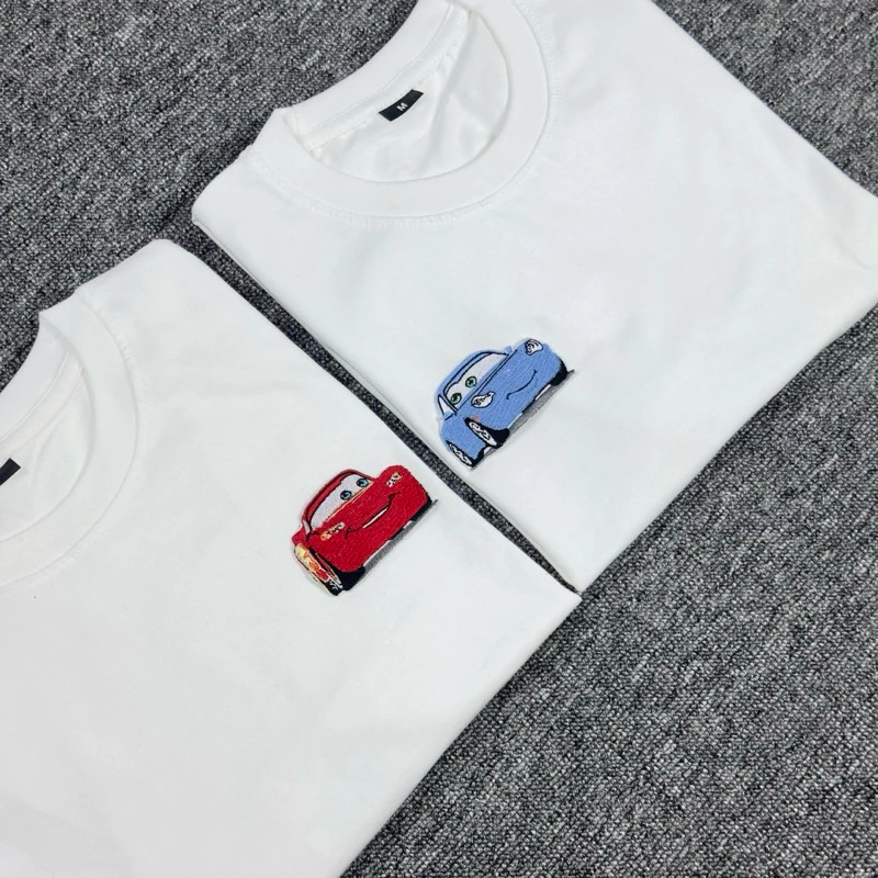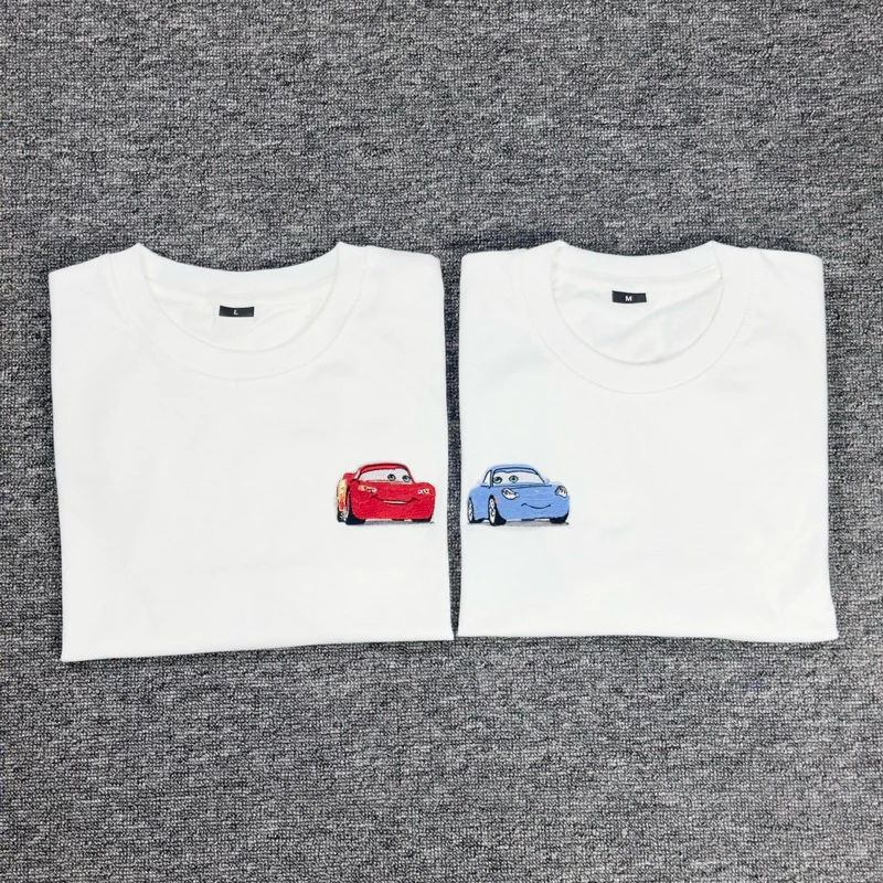 Kaos Couple Cars Lighting Mcqueen & Sally Embroidery V1 - Kaos Couple Pasangan Pria & Wanita Combed 24s~FREE STIKER