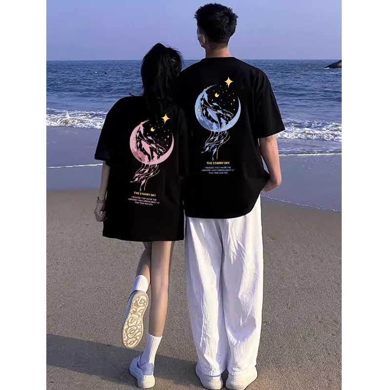 Mode Korea paus lumba-lumba bulan astronot planet baju kaos pria T-shirt wanita t shirt pria couple pasangan oversize co