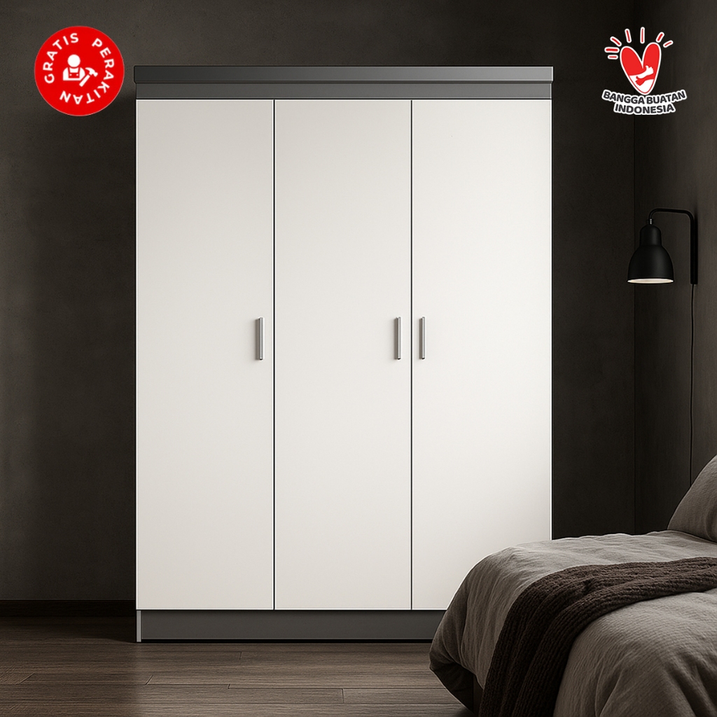 Harvest Furniture Lemari Pakaian Baju 3 Pintu Murah Minimalis