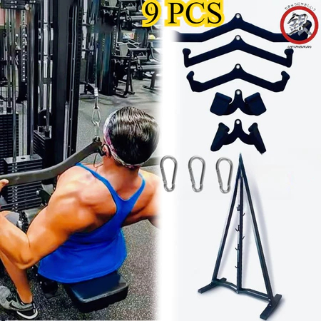9PCS/Set Dual Function Back Workout Equipment /Mag Grip Handles Premium/Fitness Gym Cable Attachment Power Handle Bar La