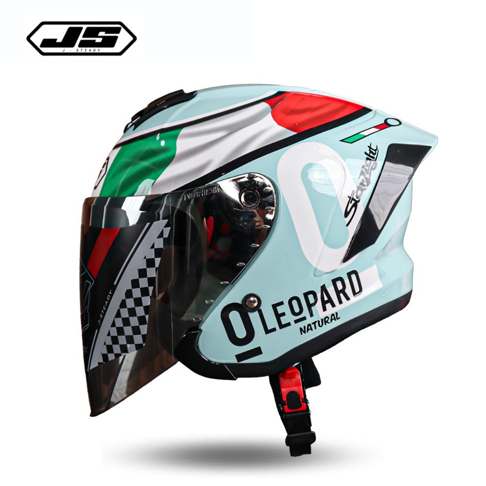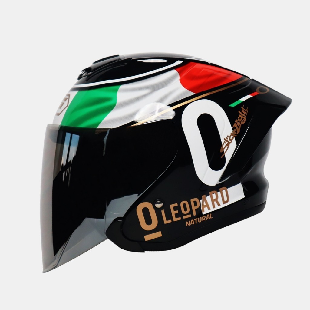 Helm JS Armor Ori Motif Leopard Italy Tosca - Helm Half Face Cowok Keren Paket Ganteng sudah SNI