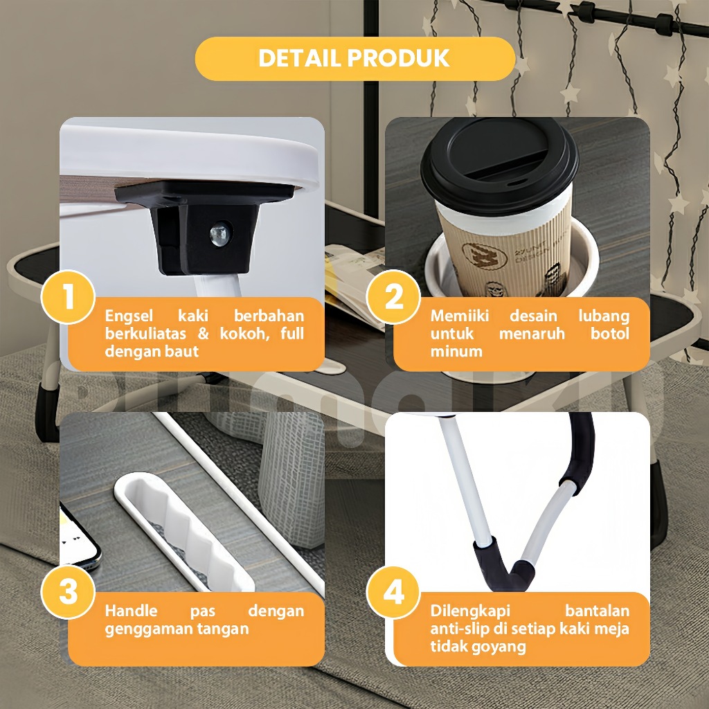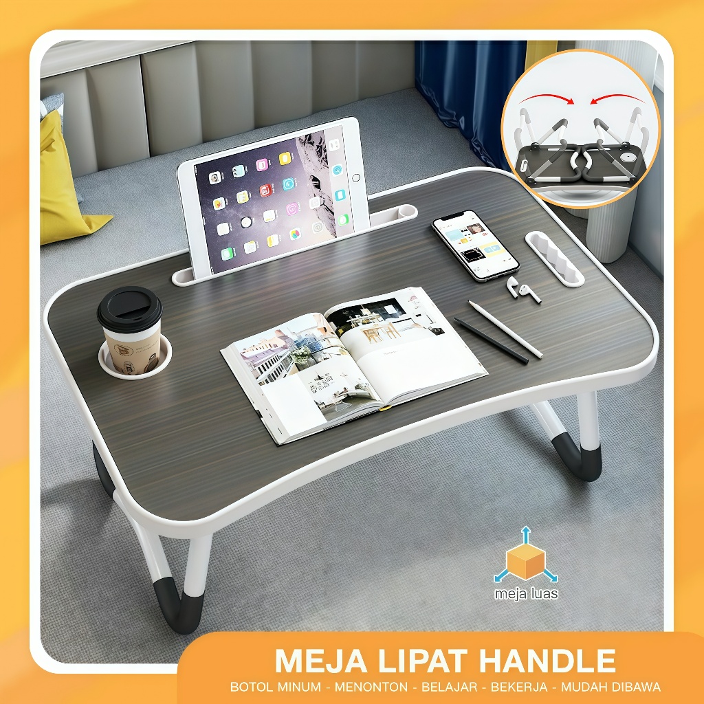 Meja Lipat Belajar Laptop Jumbo Ukuran 60x40 Cm Motif Polos Anti Slip Bahan Kayu Kokoh Berkualitas