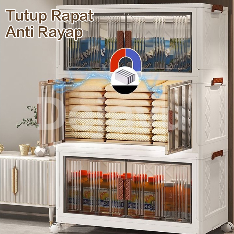 Dejavu Lemari Plastik Susun Dengan Roda Dan Pintu. Rak Susun Serbaguna 52cm. 2 / 3 / 4 Susun HSB782