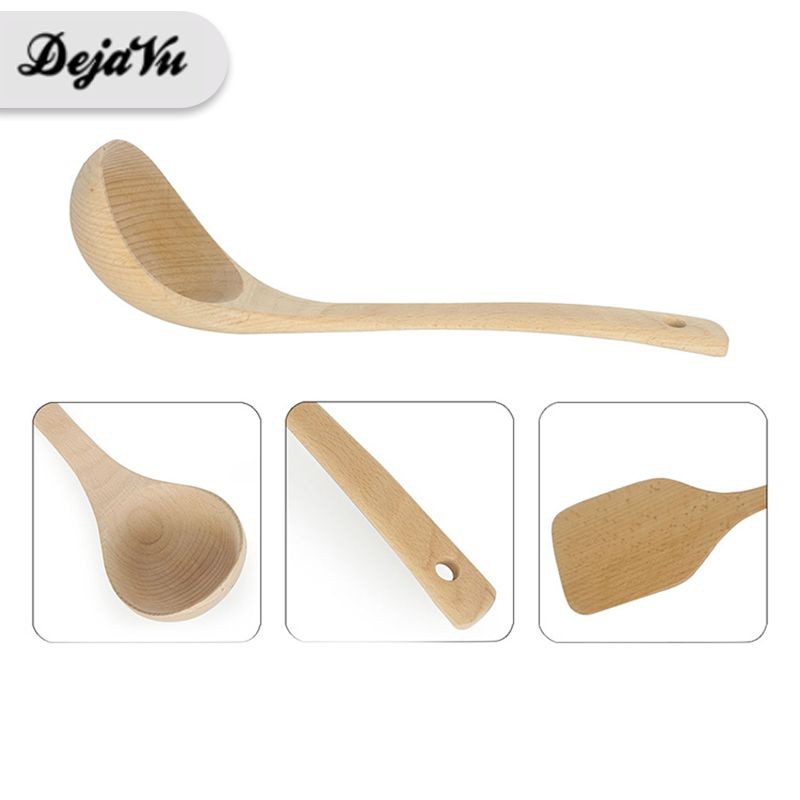 Dejavu Sutil Kayu Sodet Spatula Kayu beech Sendok Sup Pengaduk Nasi Adonan Centong Bulat HLS201