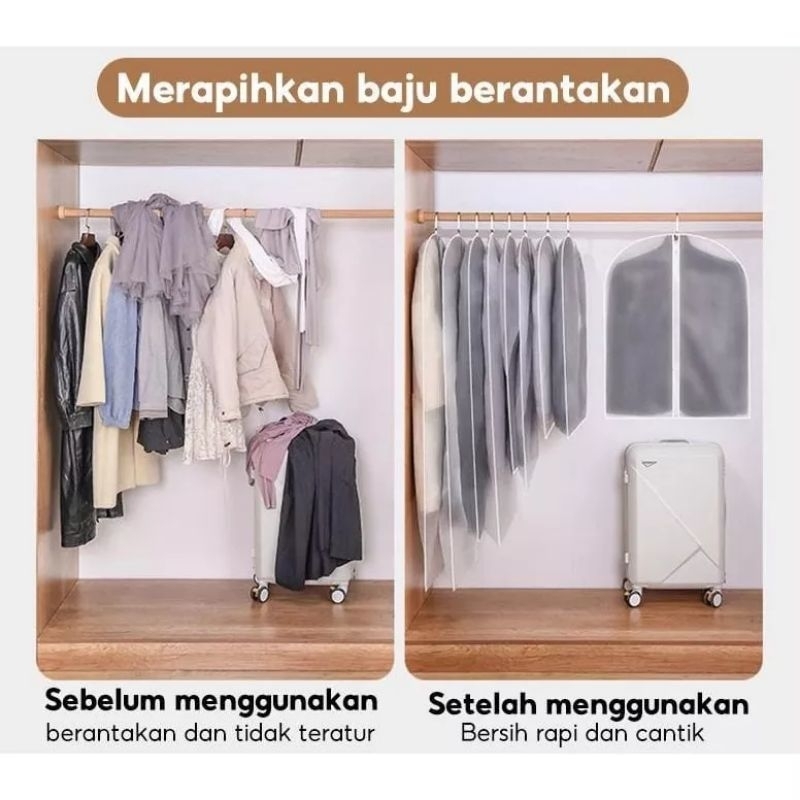 Sarung Plastik Pelindung Baju Cover Baju Resleting Anti Air Anti Debu
