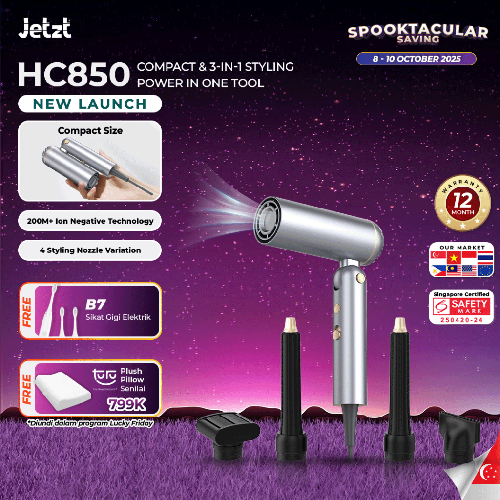 Jetzt HC850 Foldable Hair Dryer with Plasma Ion Care - Pengering Rambut Travel Friendly