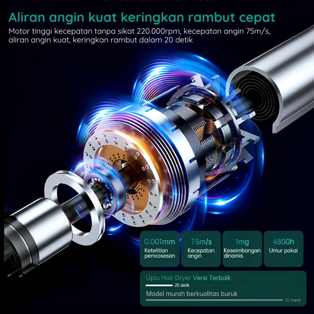 UPLU Hair Dryer Led Display Pengering Rambut Hairdryer Ion Negative High Speed 220.000 Rpm