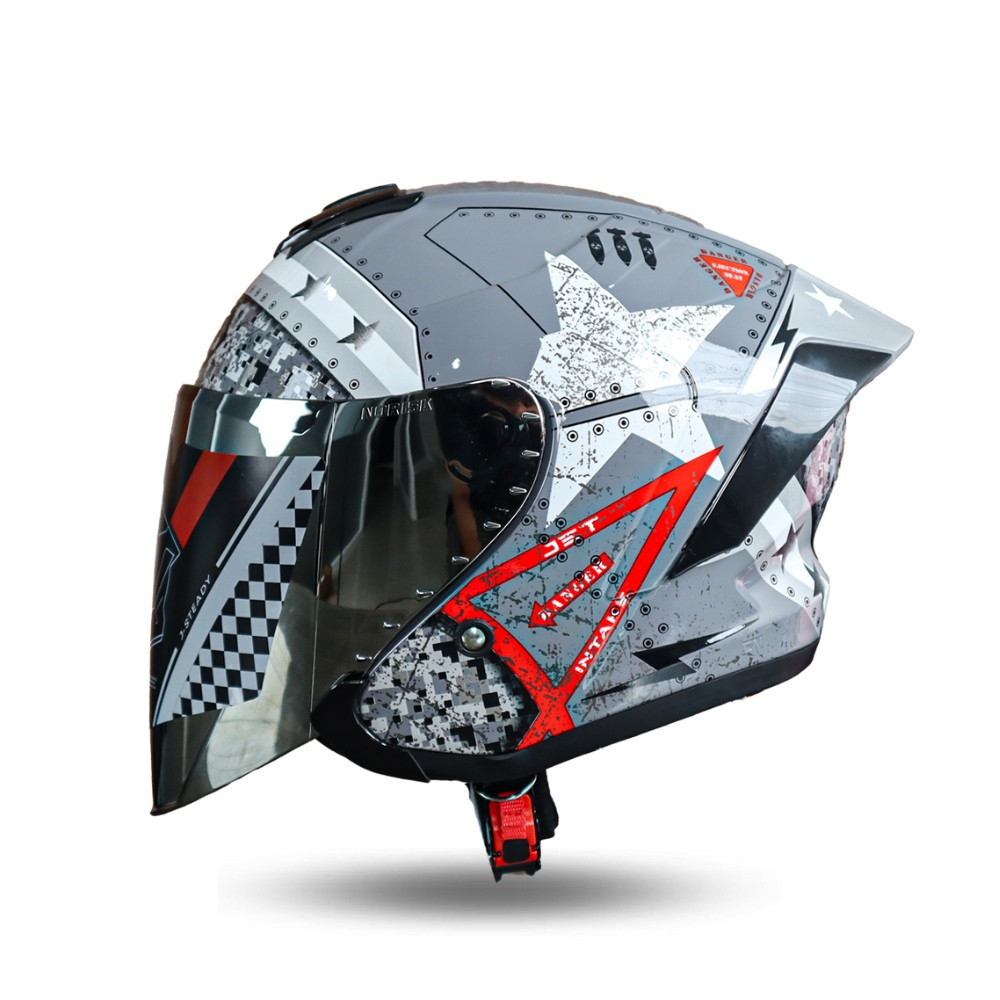 Helm JS Armor Ori Motif Carbon Glossy - Half Face Helmet Cowok Keren Paket Pria Ganteng sudah SNI
