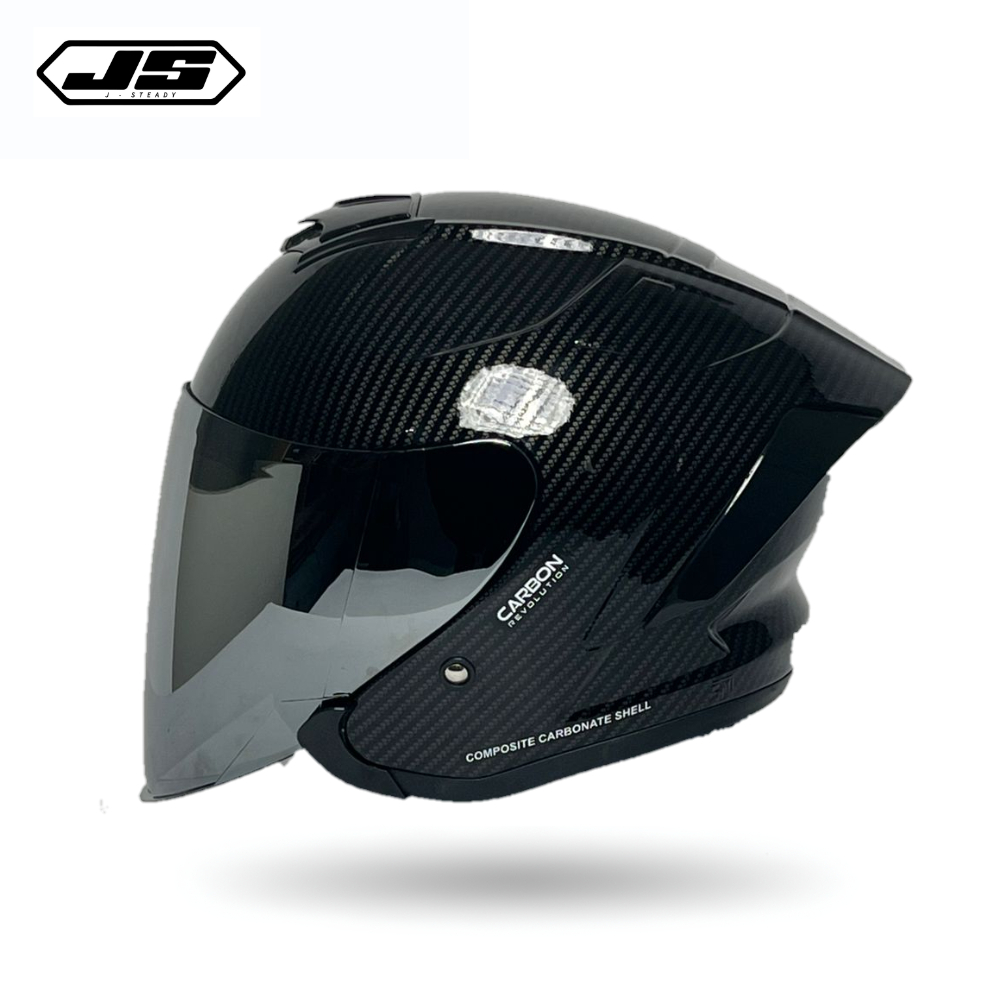 Helm JS Armor Ori Motif Carbon Glossy - Half Face Helmet Cowok Keren Paket Pria Ganteng sudah SNI