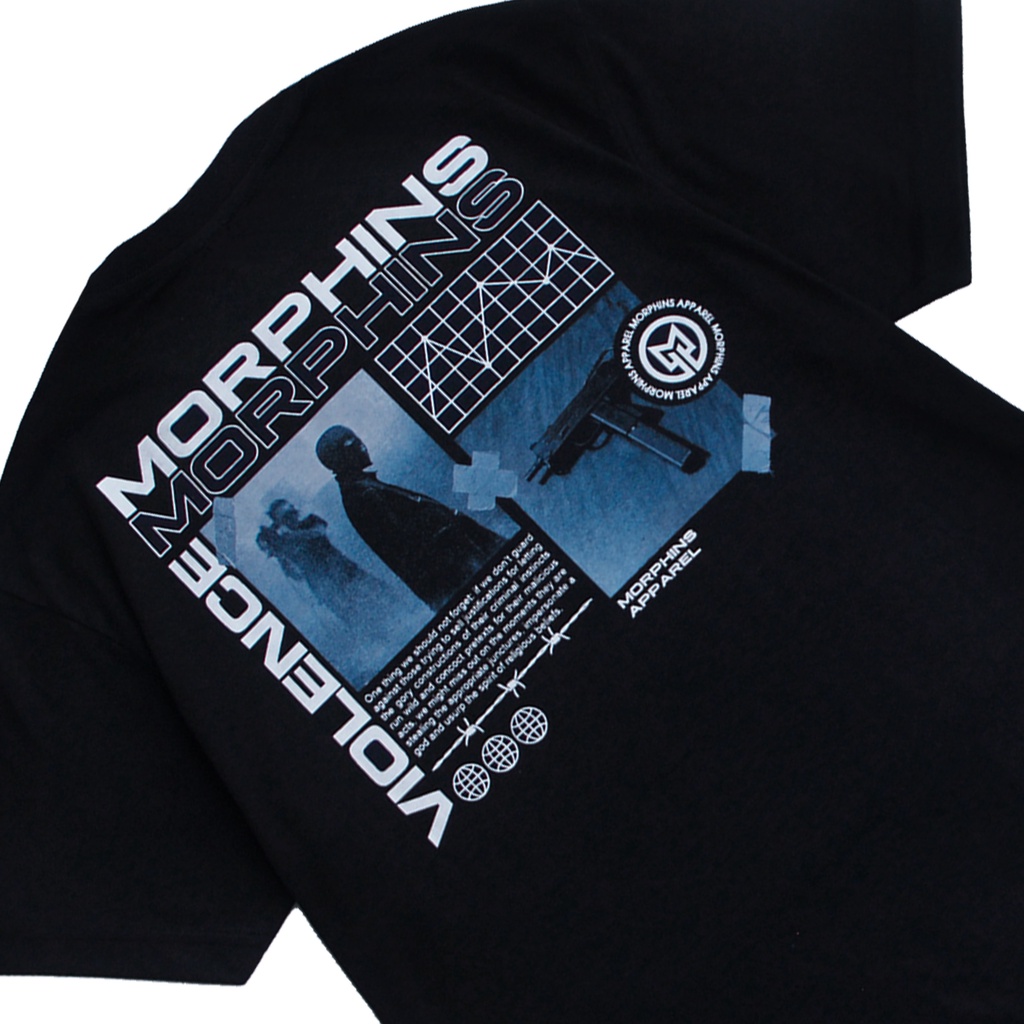 Kaos T-shirt Distro Pria Bandung Baju Atasan Morphins Violence Original Lengan Pendek Hitam Katun Size L dan XL