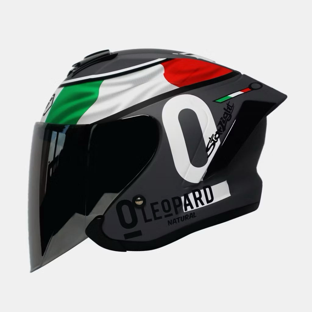 Helm JS Armor Motif Leopard / Star / Army Half Face Original SNI