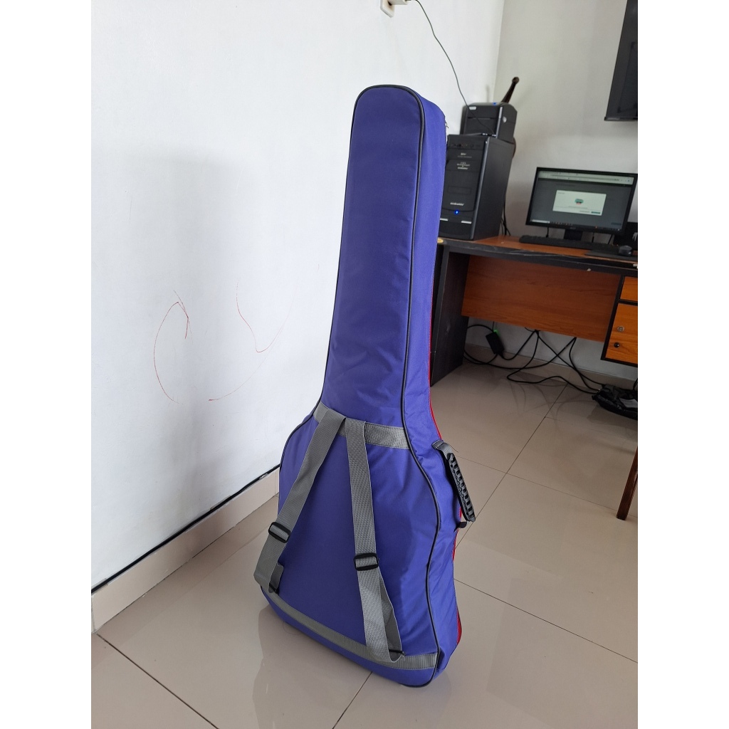 Tas gitar akustik jumbo p 110cm l bawah 45cm tebal badan 12cm besar bahan lak hitam mengkilap waterproof harga grosir