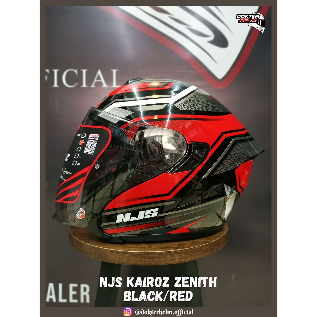 HELM NJS KAIROZ MOTIF ZENITH BLACK RED GLOSSY ORIGINAL SNI HELM NJS HALF FACE 2 KACA 2 VISOR