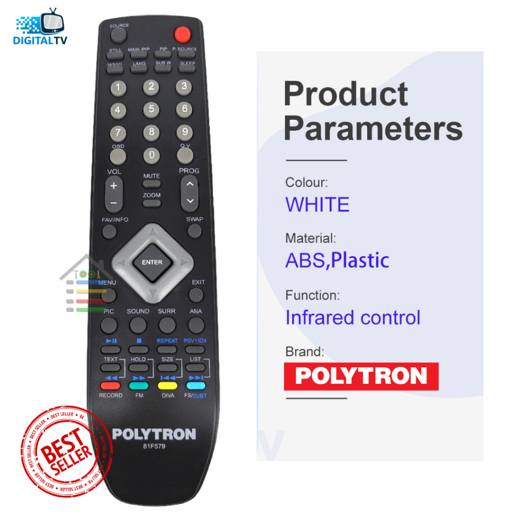 REMOTE TV POLYTRON LCD LED POLYTRON 81F579 HITAM ANALOG NON DIGITAL