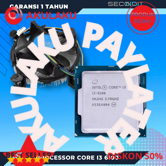 processor intel core i3 6100 processor core i3 gen 6 socket 1151 dengan fan intel