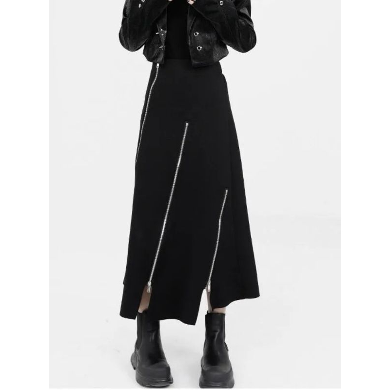 Rok Kulit Wanita Variasi Resleting Gaya Vintage/Rok Kulit Panjang/Rok Kulit/Rok Kulit Wanita