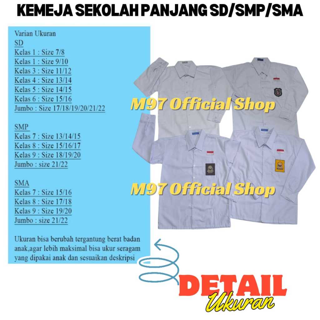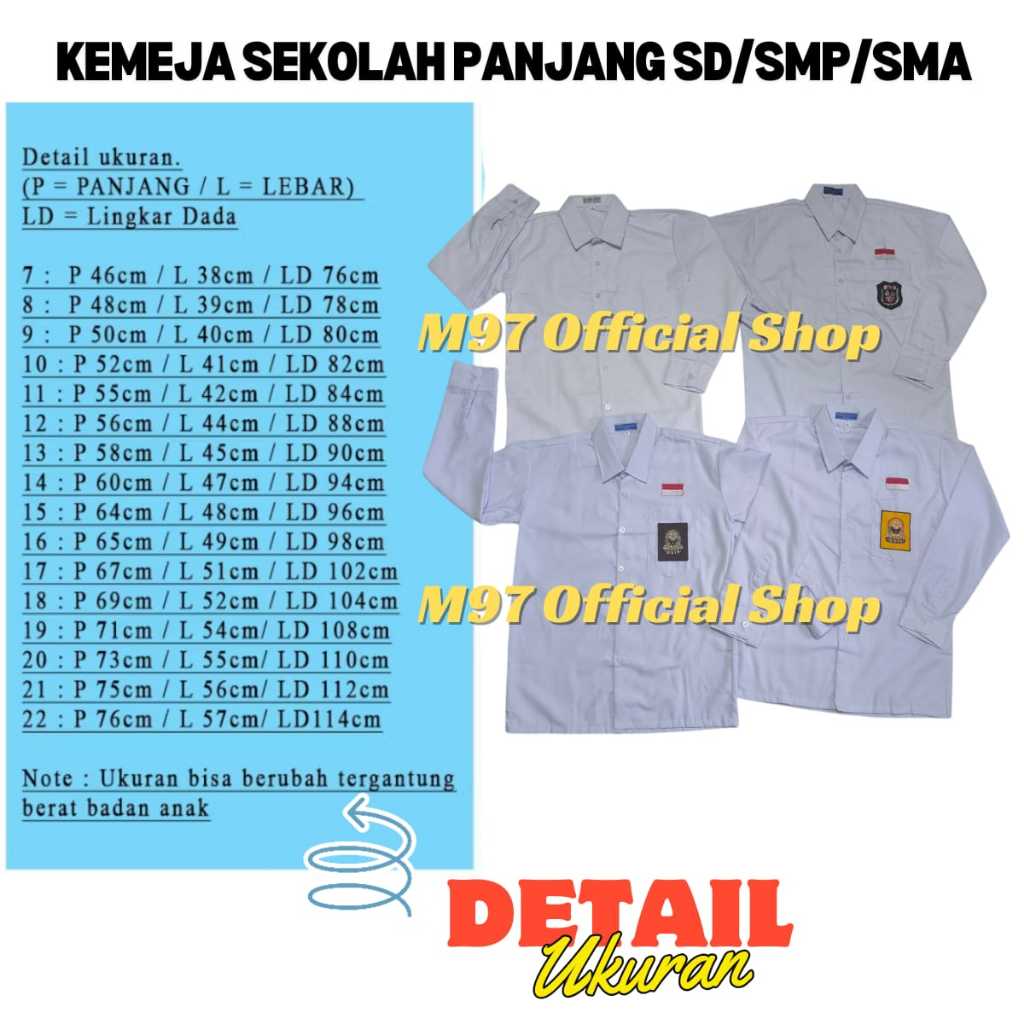 Baju Kemeja Seragam Sekolah SD Lengan PANJANG Putih Tebal Oxford - Baju Pakaian Hem Atasan Seragam Sragam Merah Putih Le